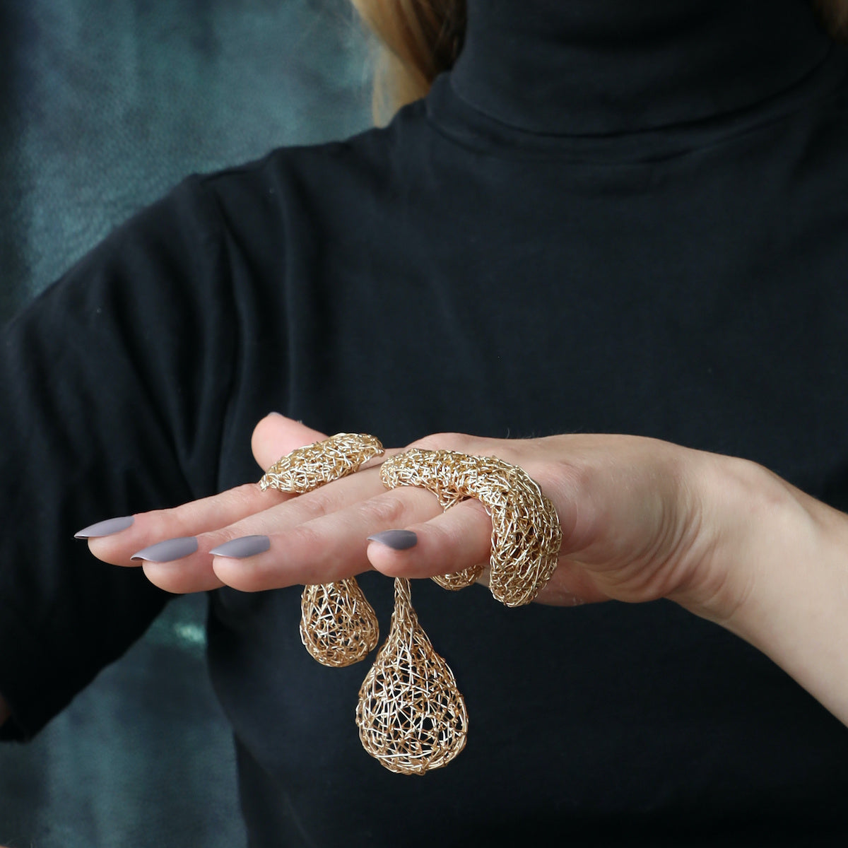 Ring "Megashow"... The main ring from the exhibition "I Don't Shine, I Have Something to Say". This ring drips from the hand like slime, a metaphor for the systems that betray our trust, representing the slippery nature of corruption and power, expressed in the language of jewellery. With this series Sheila won three awards for originality during the Venice Biennale/ designweek 2025.