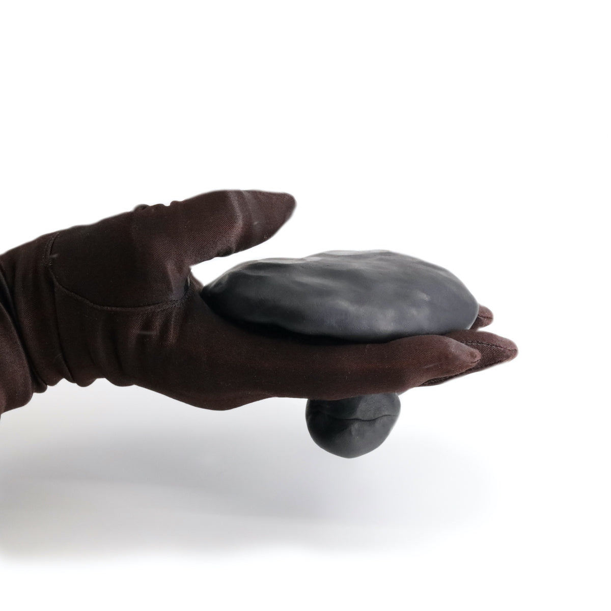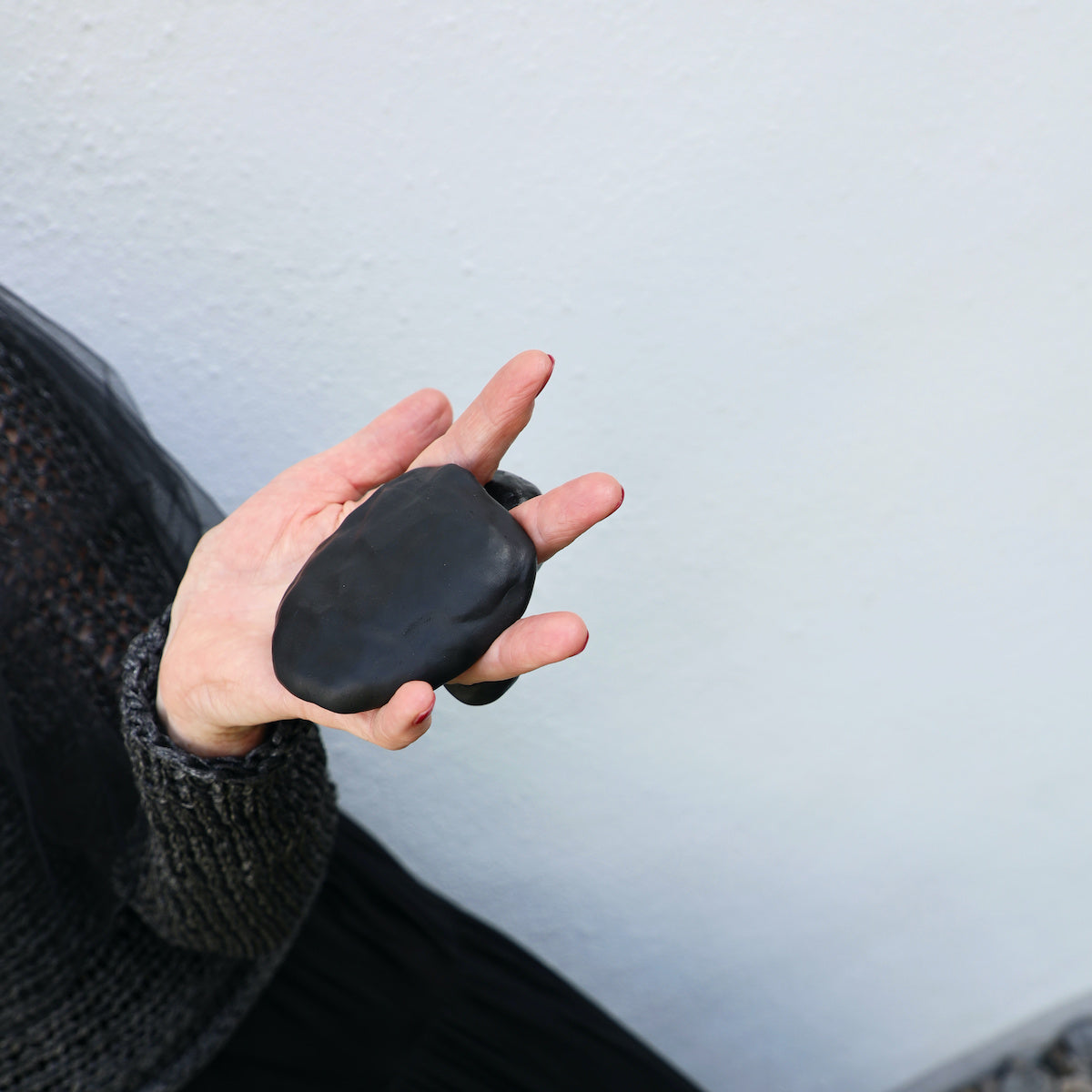 Ring "Meltdown"... thick black inevitability, slipping through our fingers. This ring embodies the oil industry's grip on our world—that dark, slippery surface concealing what we know: alternative inventions exist, yet powerful forces keep us utterly dependent and more. The black blob, is honest about what it represents, when truths are too thick to ignore, too slick to grasp, too deeply embedded to escape. This firm grip on our world... This sculpture is part of the "I Don't Shine, I Have Something to Say" exhibition, and the jewels are are dealing with jewels disguised as slime or in this case oil, which won Sheila three awards at the Venice Designweek, during the Venice Biennale 2025.