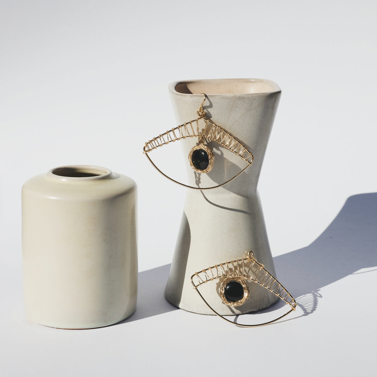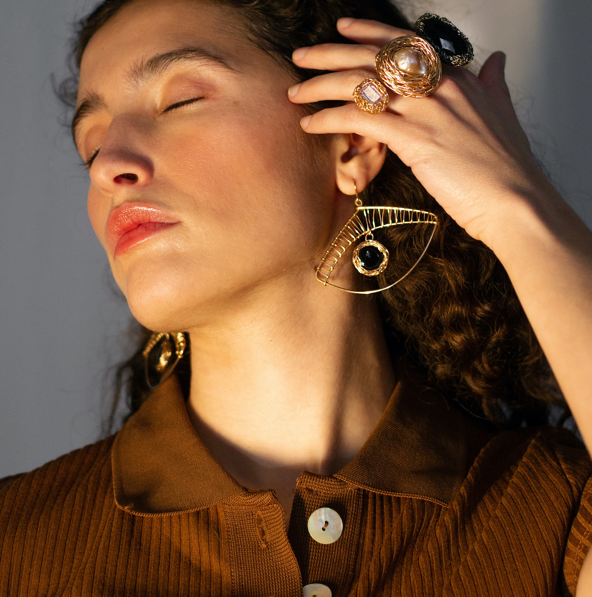 With Iksha, I wanted to translate that familiar shape into a pair of contemporary earrings with presence, character and a slightly playful edge. The eye form gives them something watchful and expressive, while the black onyx adds depth and a quiet boldness. They are light enough to wear with ease, yet striking enough to change the whole feeling of a face.