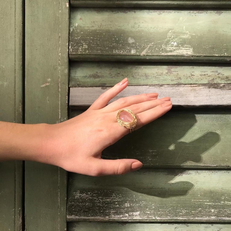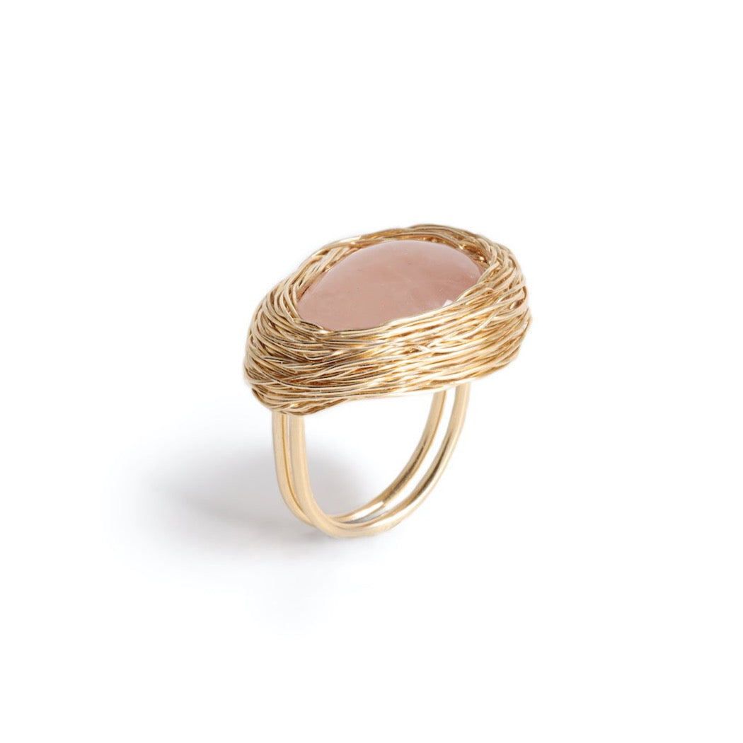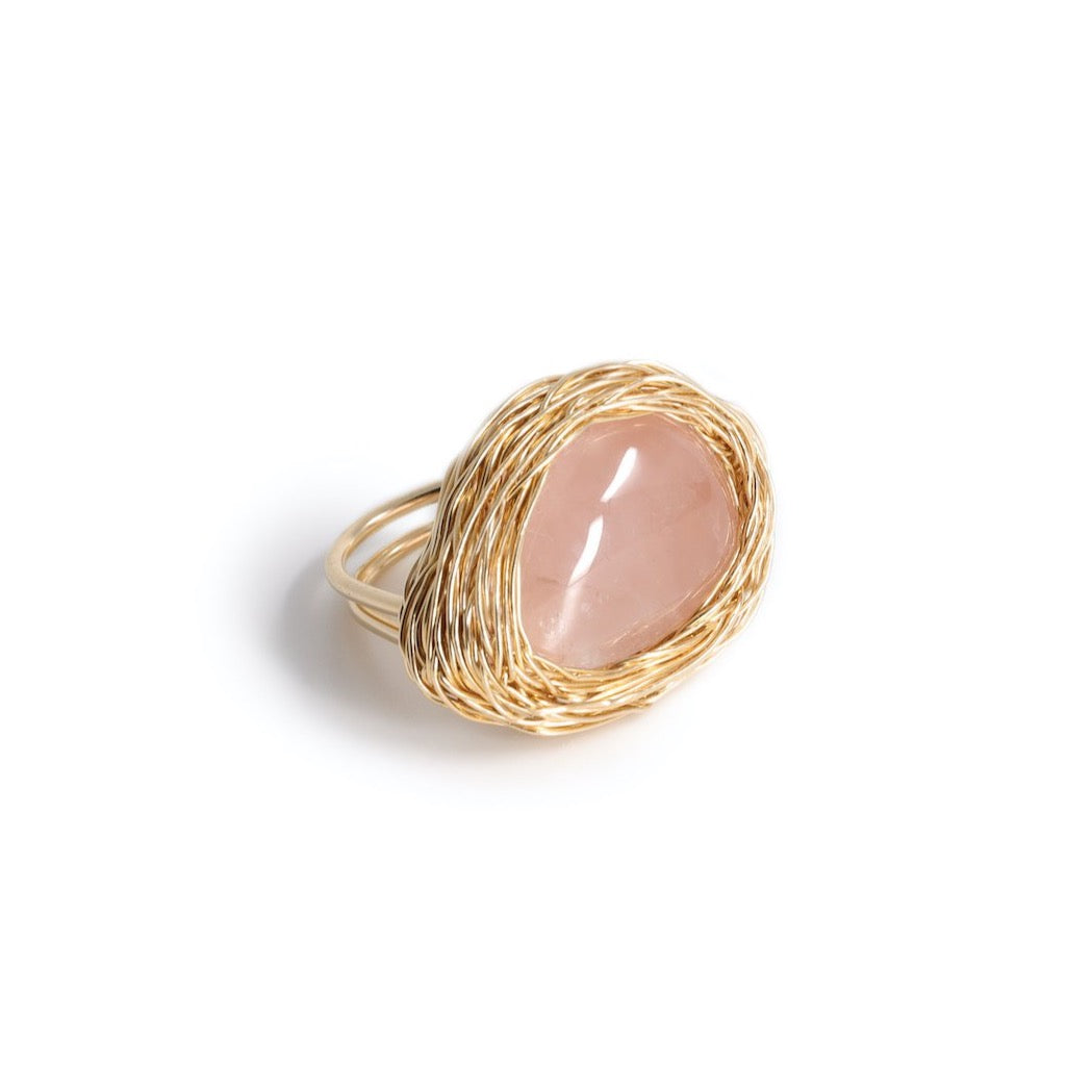 "Emma" ... is a sweet and elegant ring. Created around a luscious pink drop shaped cabochon, created by Sheila in her soft to the touch embrace technique. The lovely opaque rose quartz stone comes as a unique design. Comfortable, and her part of the more wearable stone rings within her collection, as she sits low on your hand. Emma is pure beauty, and the kind of stone ring that you’ll wear every day.